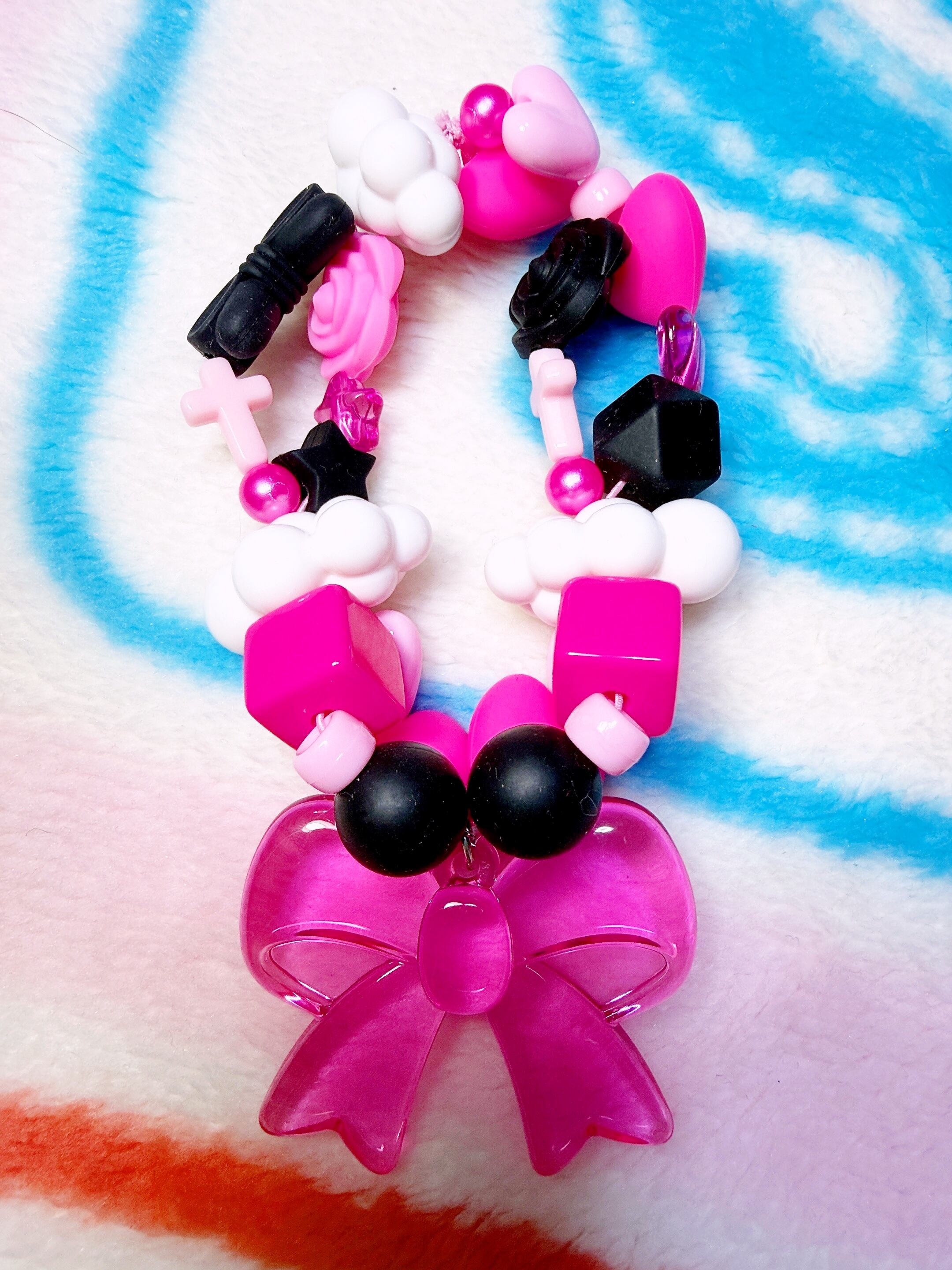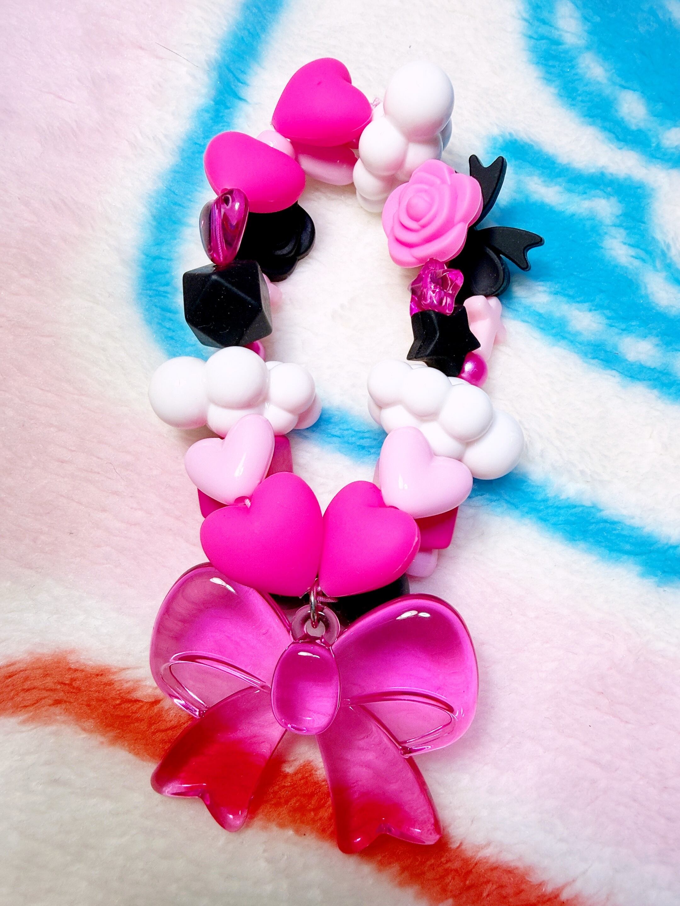 リボンのアクリルチャームが付いたブレスレットです。